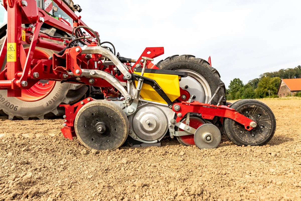 各个播种机组的压力调节以及行车道标记都完整集成在 GDI(= GRIMME 数字接口)中,可实现方便、直观的操作。可通过负载感应或双向控制装置操作机器。