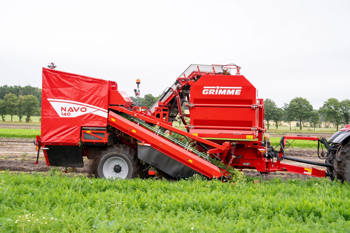 NAVO 140 jest jednorzędowym kombajnem z pasem chwytającym do marchwi, pasternaku i innych warzyw